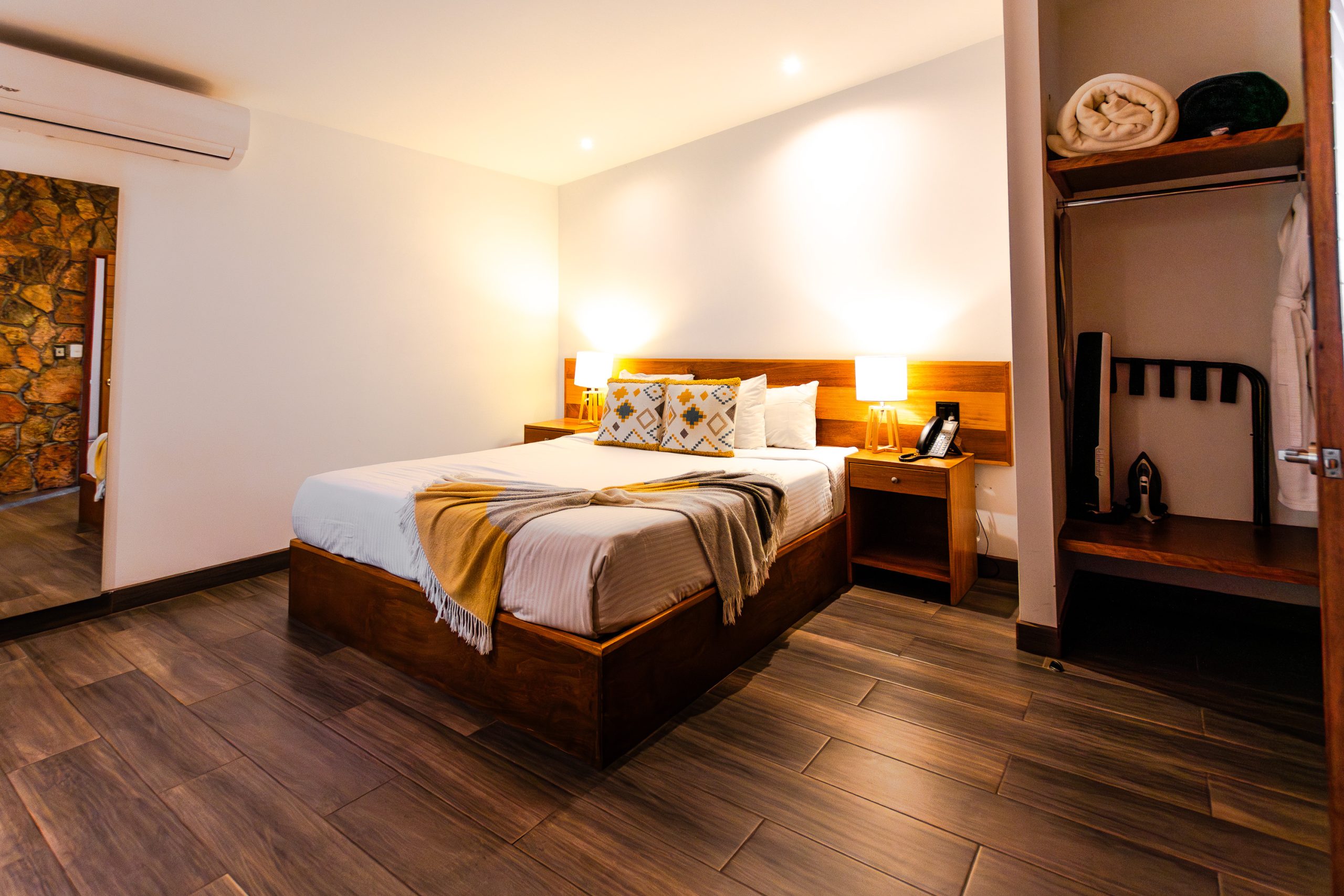 Nuestras habitaciones disponen de un baño completo con regadera y todas las amenidades necesarias para tu confort. Además, encontrarás cortinas eléctricas blackout para garantizar un descanso reparador.