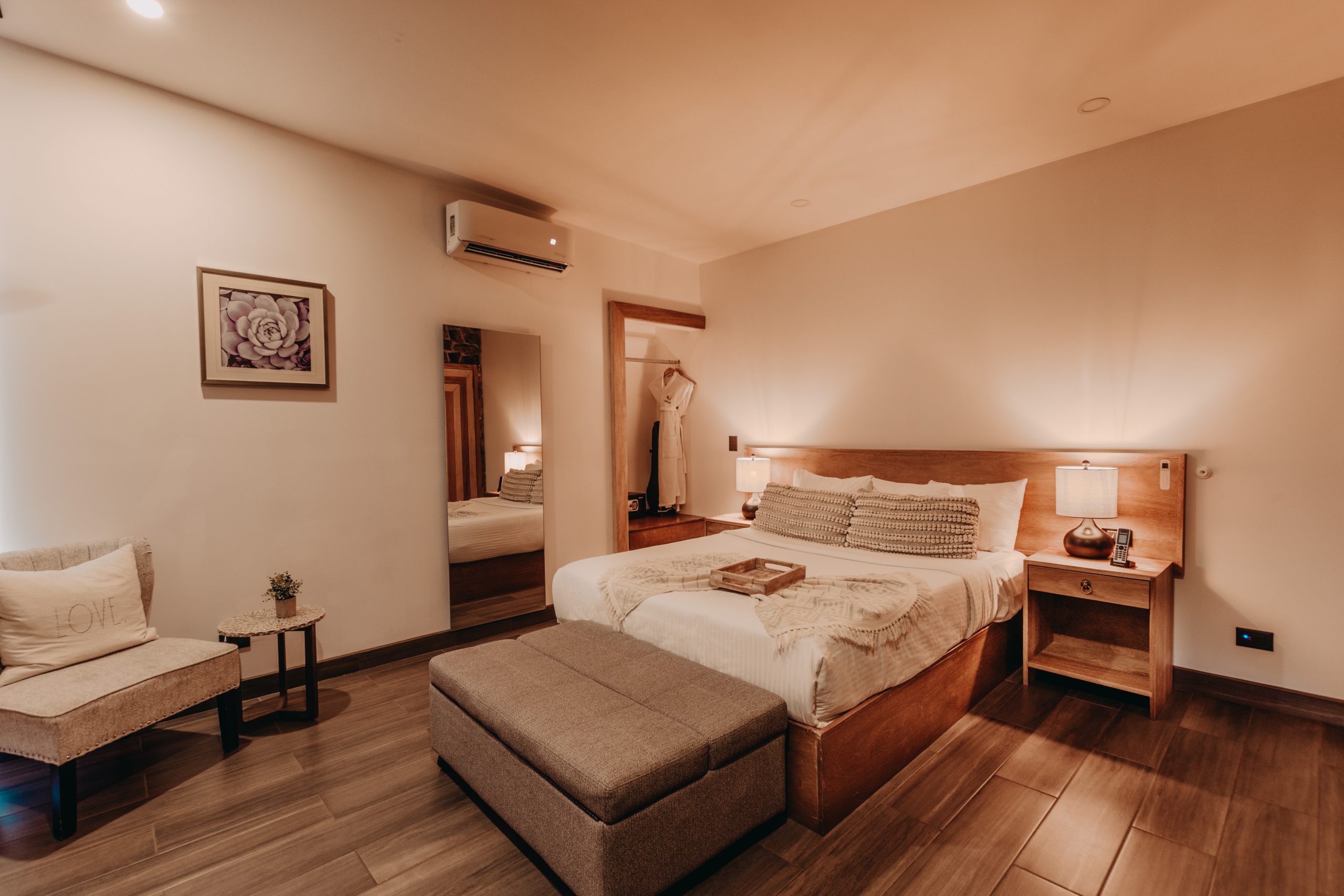 Disfrute de la majestuosidad de las imponentes montañas desde la comodidad y la elegancia de nuestro alojamiento. Este espacio exclusivo, diseñado para su máximo confort, le ofrece una experiencia única. Descanse en un ambiente libre de humo, mientras el aire acondicionado brinda una temperatura perfectamente regulada. Sumérjase en la serenidad de nuestras instalaciones, provistas con lujosas batas para su disfrute.