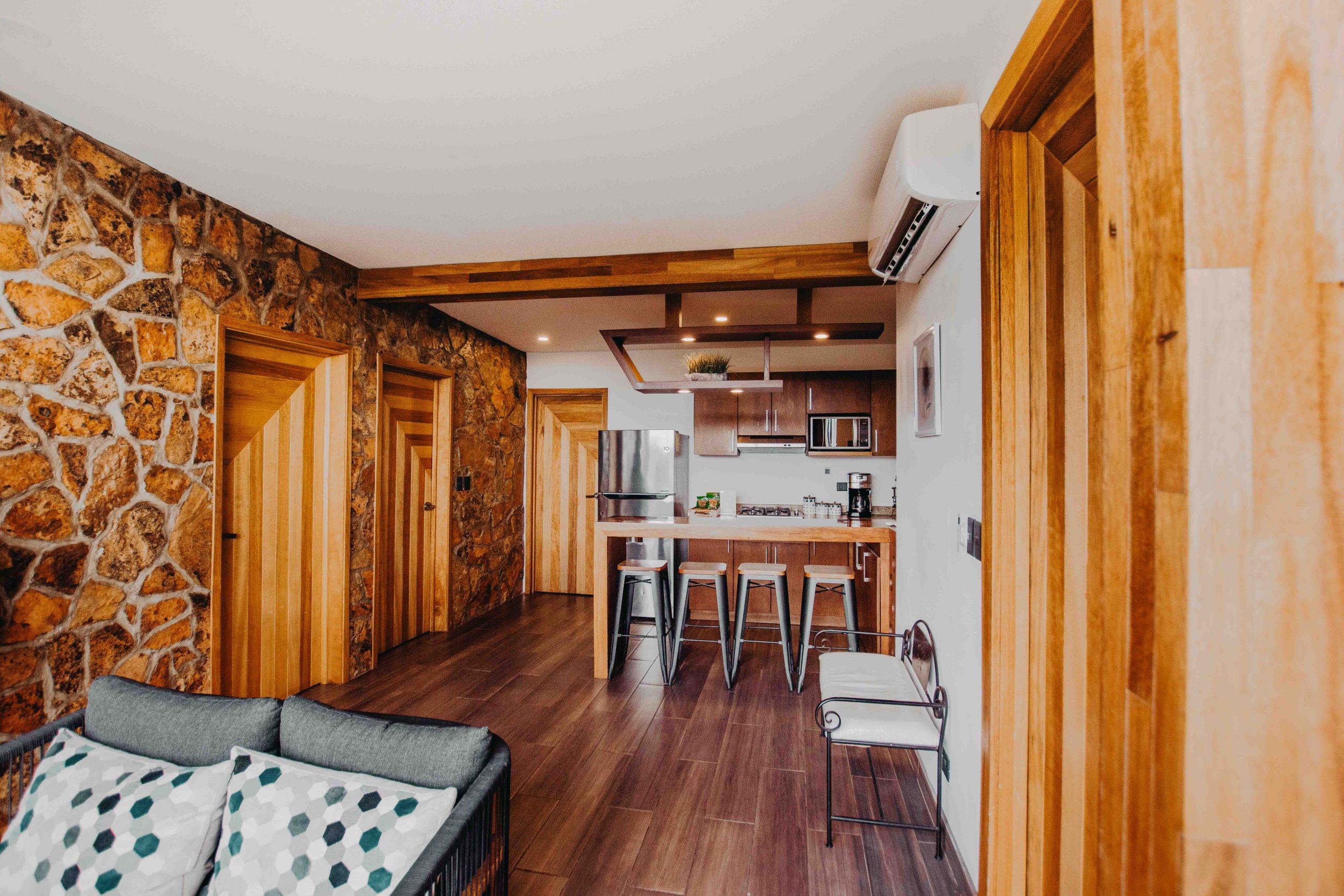 Disfrute de dos acogedores cuartos individuales, diseñados con atención al detalle para su máximo confort. La sala de estar y la cocina completa, equipada con refrigerador, microondas y estufa, le ofrecen un espacio funcional y elegante. No olvide deleitarse con una deliciosa taza de café preparada en nuestra cafetera de última generación.